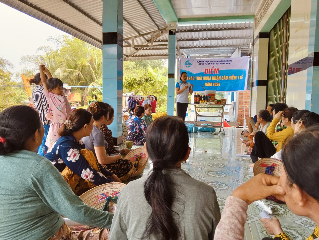 Sáng ngày 17/09/2024, Hội Liên hiệp Phụ nữ xã Vĩnh Hòa Hưng Nam tổ chức họp mặt triển khai mô hình: Đổi rác thải nhựa nhận Bảo hiểm y tế.
