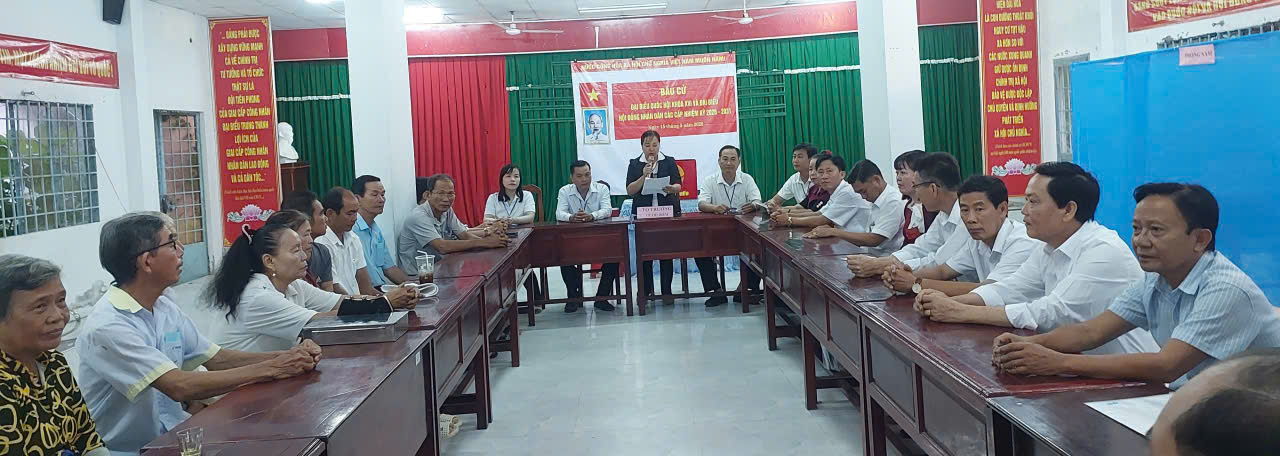 Đồng chí Lê Văn Triều, Phó bí thư Thường trực Đảng ủy xã; cùng các đồng chí dự lễ khai mạc bầu cử tại Đơn vị bầu cử số 5, xã Vĩnh Hòa Hưng