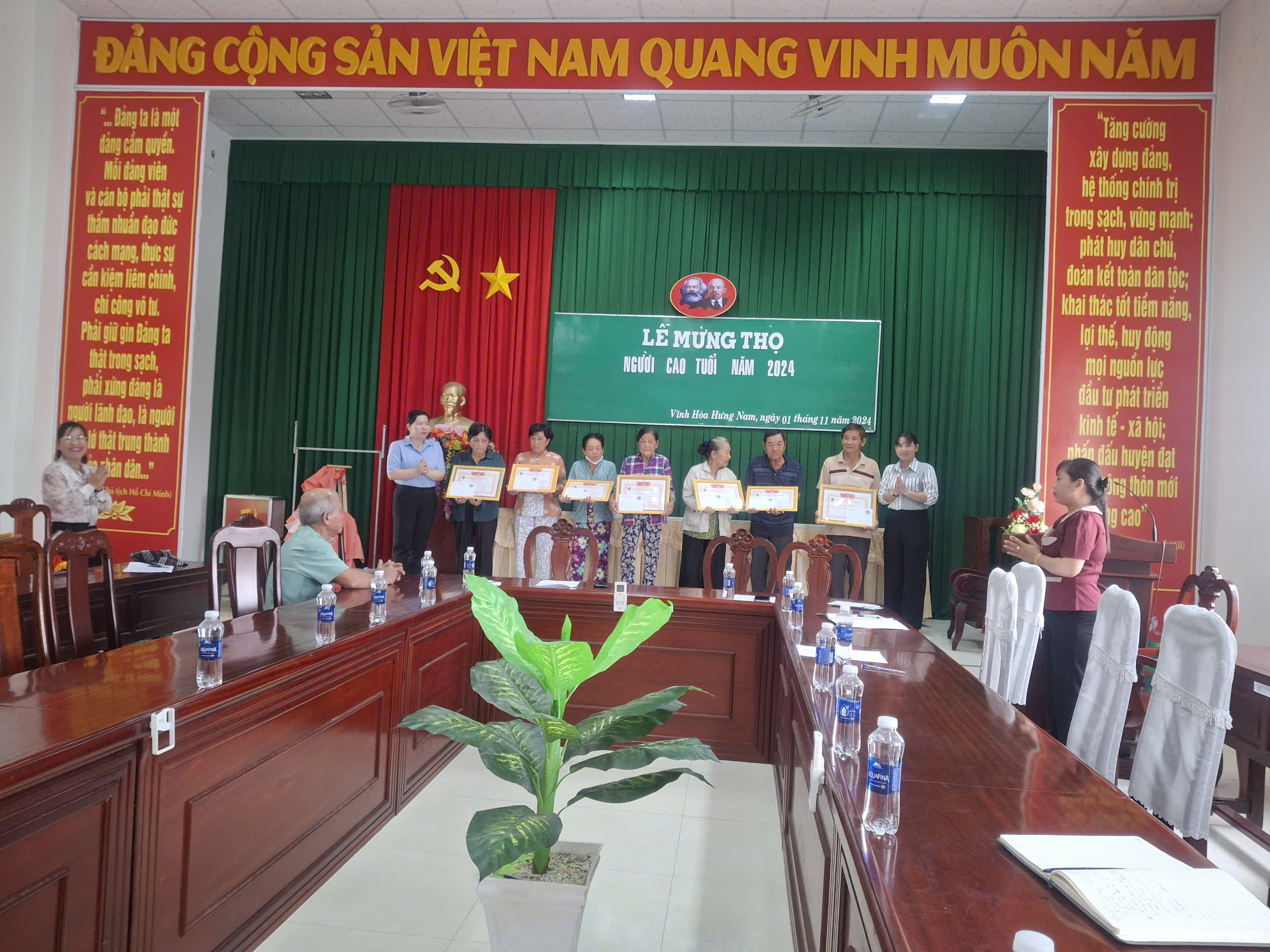 Sáng ngày 01/11/2024, UBND xã Vĩnh Hòa Hưng Nam tổ chức Mừng thọ cho 13 cụ Người cao tuổi đợt 2 năm 2024.