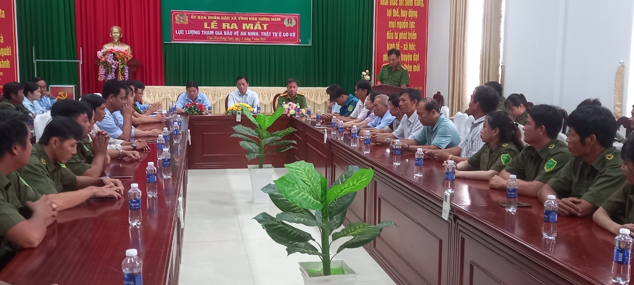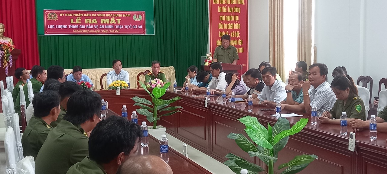 Sáng nay 01/7/2024, UBND xã Vĩnh Hòa Hưng Nam tổ chức lễ ra mắt lực lượng tham gia bảo vệ an ninh, trật tự ở cơ sở 12/12 ấp trên địa bàn xã Vĩnh Hòa Hưng Nam.
