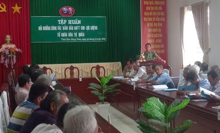 Ảnh: ông Trương Văn Thái (đứng) tổ trưởng tổ bảo vệ an ninh trật tự ấp 2, xã Vĩnh HH Nam phát biểu nhận nhiệm vụ.